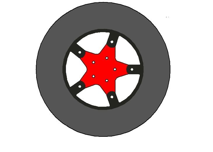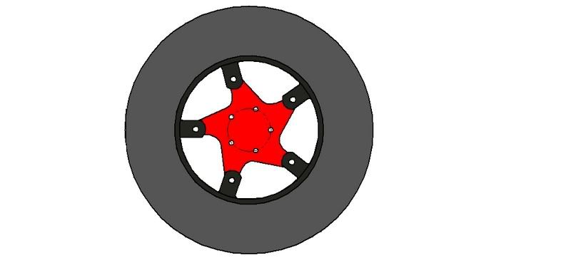 You probably noticed the goofy looking bolt pattern. Its a wide-5 bolt pattern. I dont have a wide-5 bolt pattern. But the huge circle makes it really easy to make adapters. And.......the best part is that Josh (who is the awesomest guy ever cause he has access to a cnc laser cutter) can laser cut me some adapters. I can give him a dimensioned drawing and he'll return 4 adapters. I'd either paint or get Josh to powdercoat them red so I'd have red centers and black barrels.