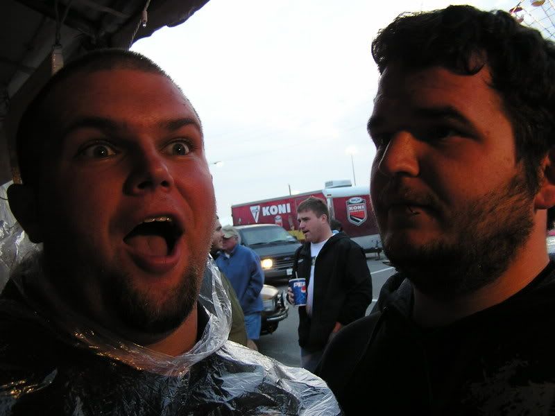 yes me and vann will be leaving around 7am to be there @ 8am. we can pick up fire wood between now and then. we can also go shopping once everything is settled. i think that we should stay in the track until it starts, since last time we went shopping before hand, and it wasn't very easy to get back in, and we almost missed the start. but there is ton's to check out in the infield and garage. i think that sean may be coming out to visit us later in the day. other than that it should be a small group. weather reports are contradicting each other. one says rain on sat. and sun on sun. and others show opposite. hopefully it's pleasent, but everyone should bring an umbrella just incase. i might also bring a chair. i don't want to bring to much stuff anyway.