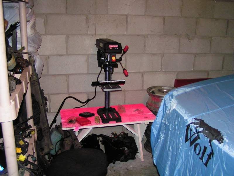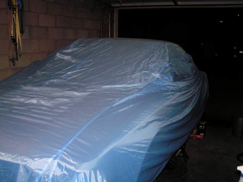 I scraped some more sound deadening crap off of the interior. I found out why the car rolls so badly....the tires rub the shock bodies because they're so damn big. and then you can see my shop additions and the car cover i picked up from my dad.