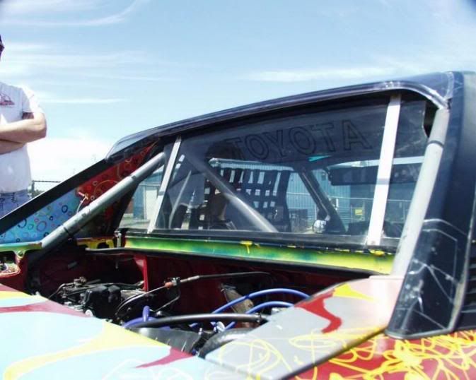 Here you can see the rear bars that go to the strut towers, and the lexan rear window with the cutouts and aluminum reenforcements.