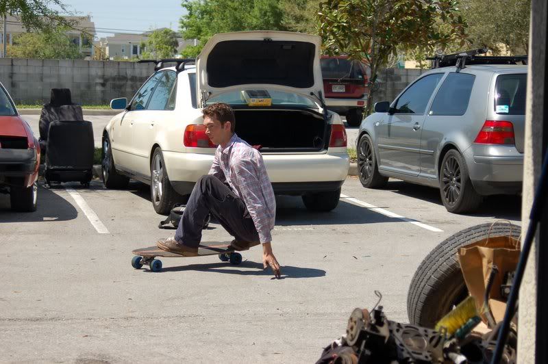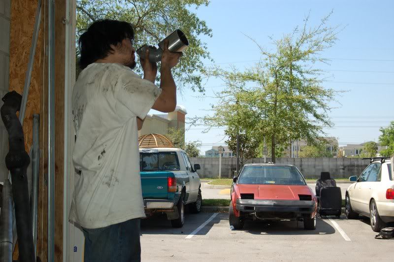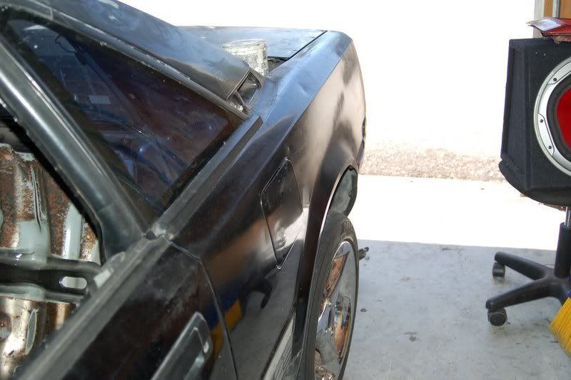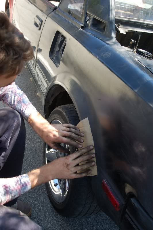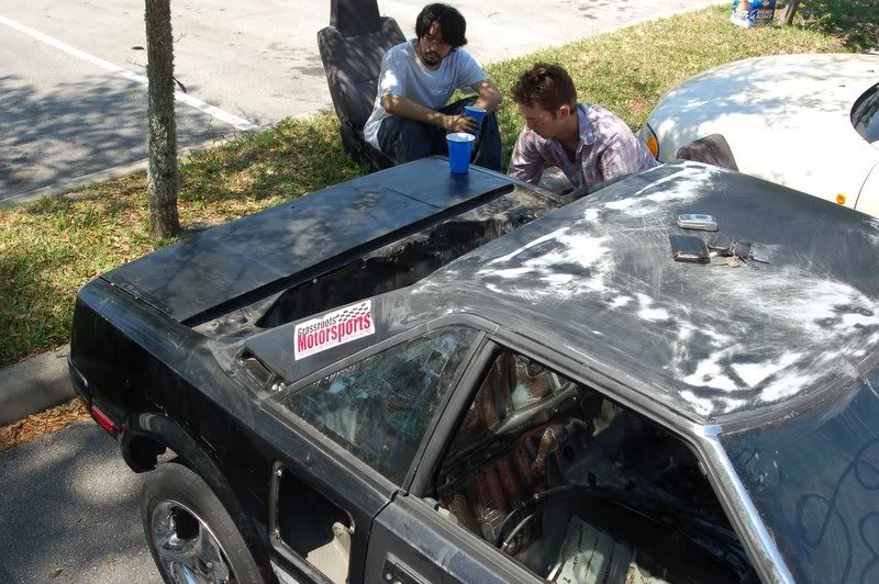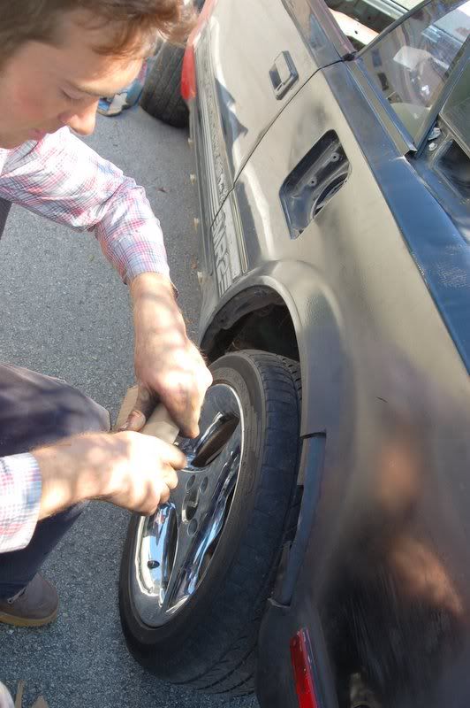-the car is rolling...the suspension went back on with the new bushings. -we dropped the old gas tank out. -jon fixed the left rear fender -viet finished scraping off the sound deadening (it was really heavy too, surprizing) -i installed the pedals and master cylenders.