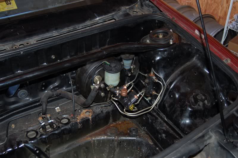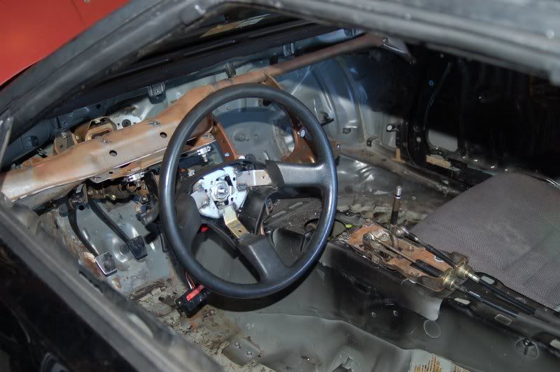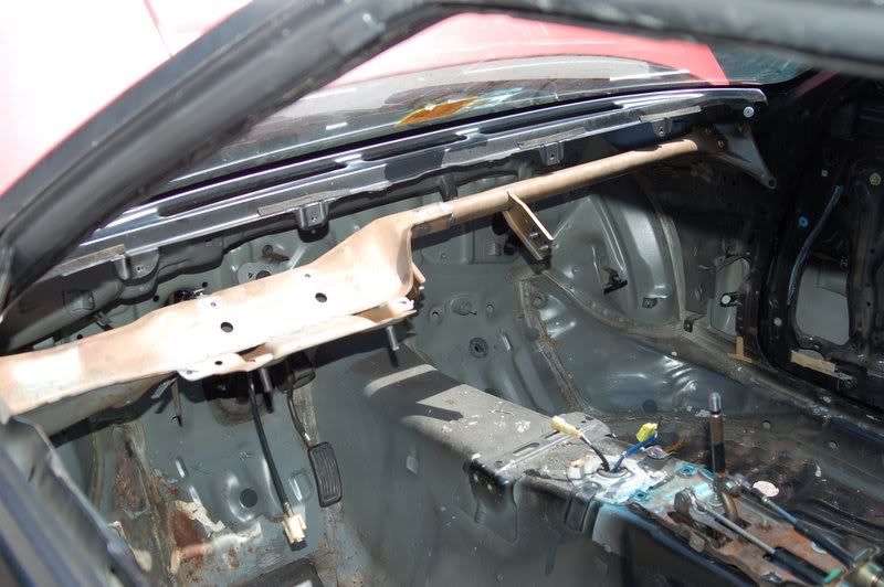 -removed hearter core plumbing -installed prothane steering rack bushings -secured rear brake line and throttle cable under car -bolted up firewall bracket for throttle cable