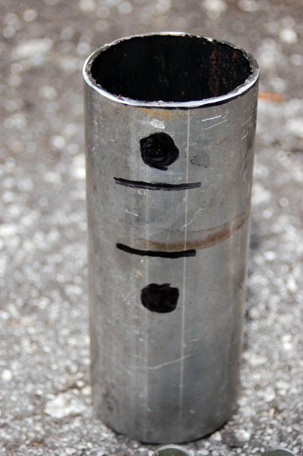 Here's a 3 inch piece of pipe marked with where the nipples will go and where the baffel plates will go.