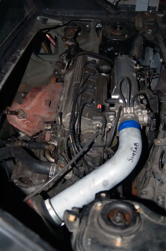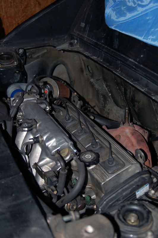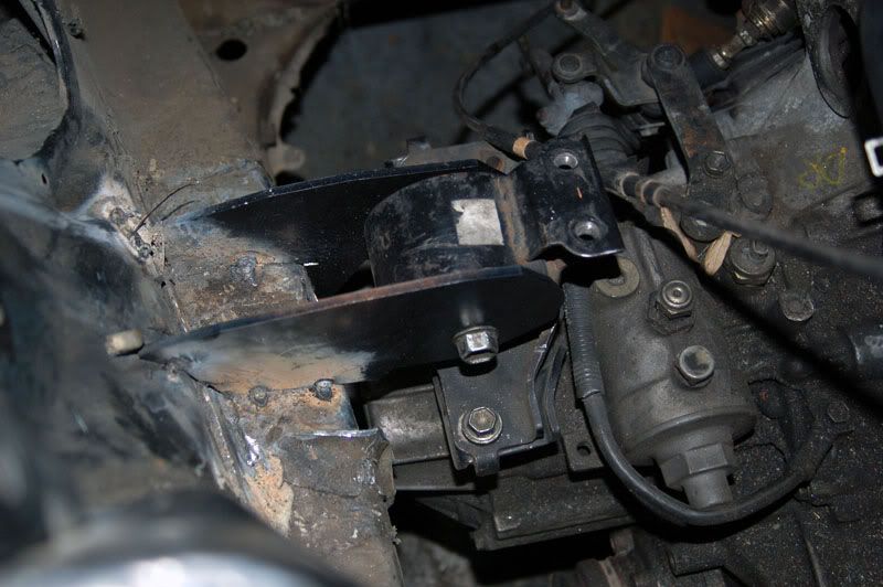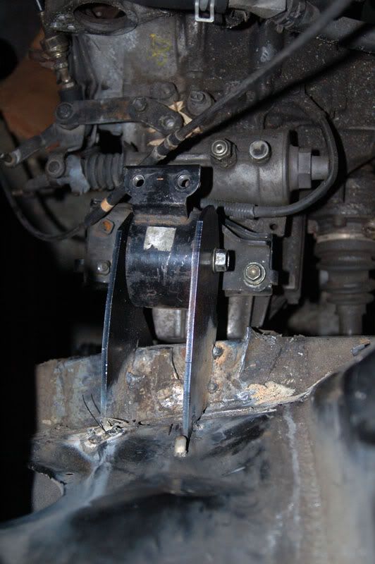 got more **** done yesterday 6-20-06. got some more stock mounts at the junk yard to mod to fit on our car. With that we made the right side motor mount. ATM the motor is being held by the 2 side mounts we made and tack welded. As far as mounts go I think we have the front mount and rear mount palnned out, we just need to make them.