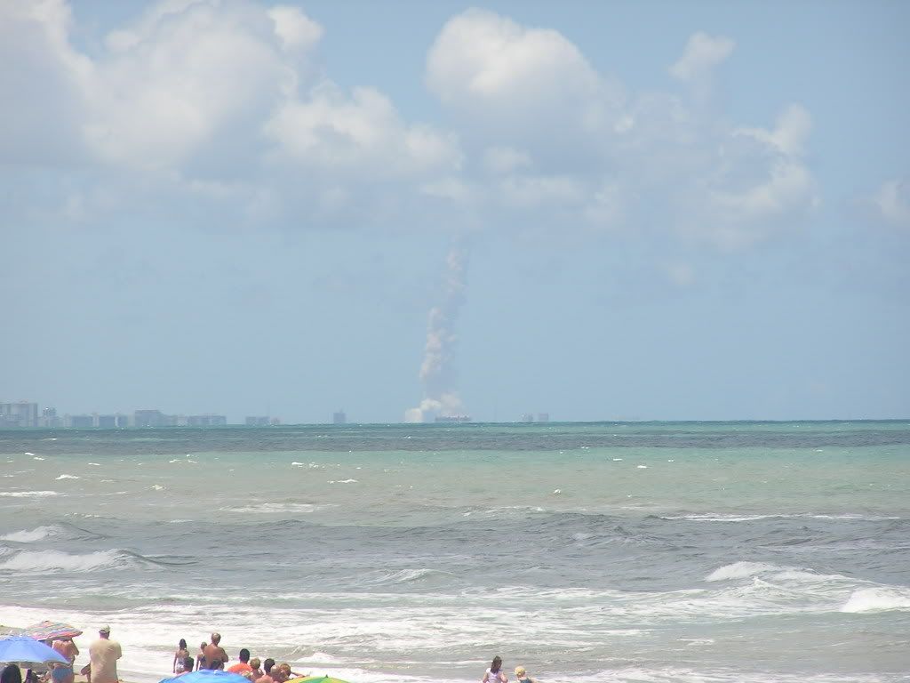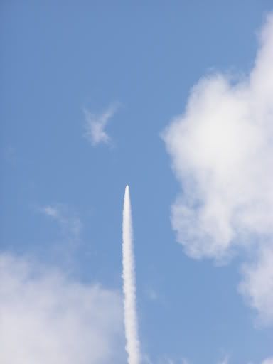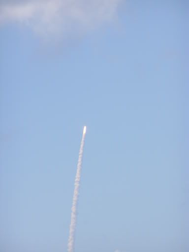 This was our 4th of July. Woke up, late because of my b-day the night before. lol Then, drove out to melbourne, watched the shuttle launch, surfed, drove back to O-town, where we all piled in to Jamin's car to go watch the fireworks downtown. Crazy day...