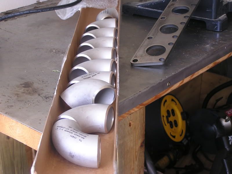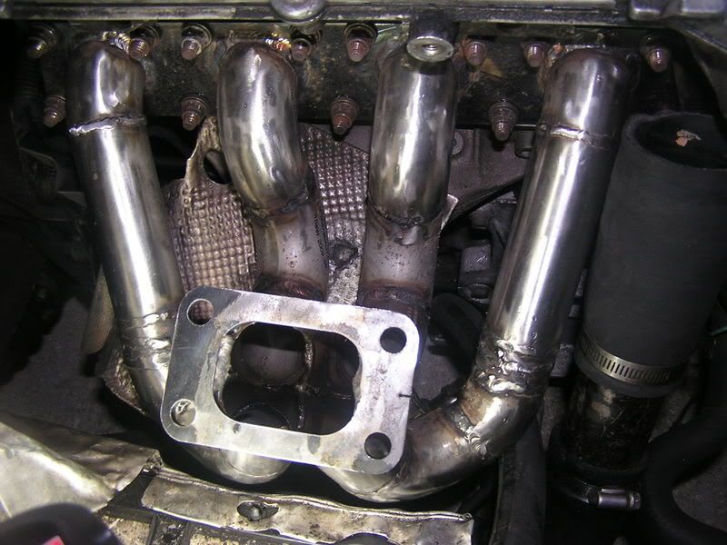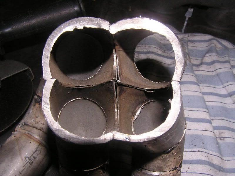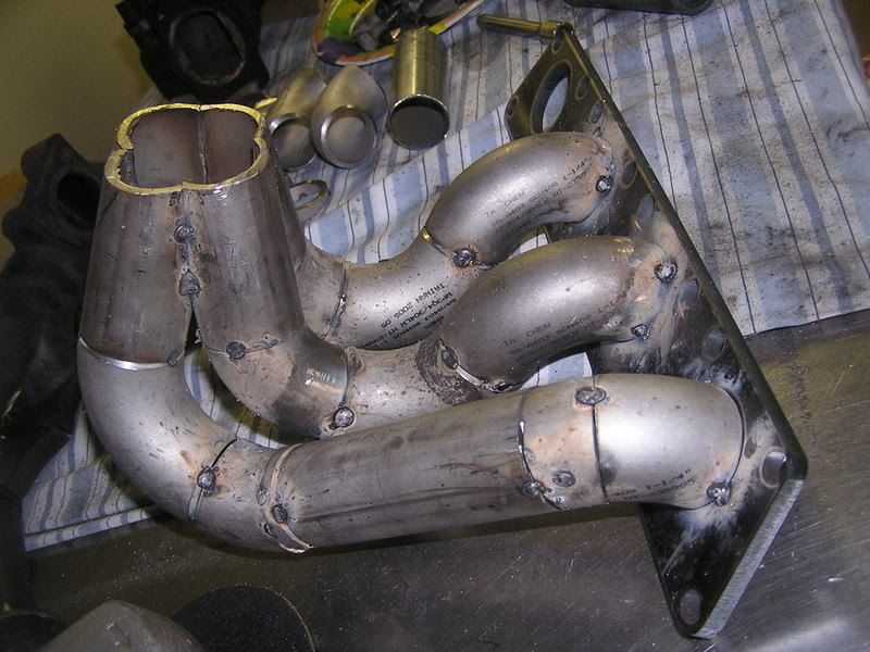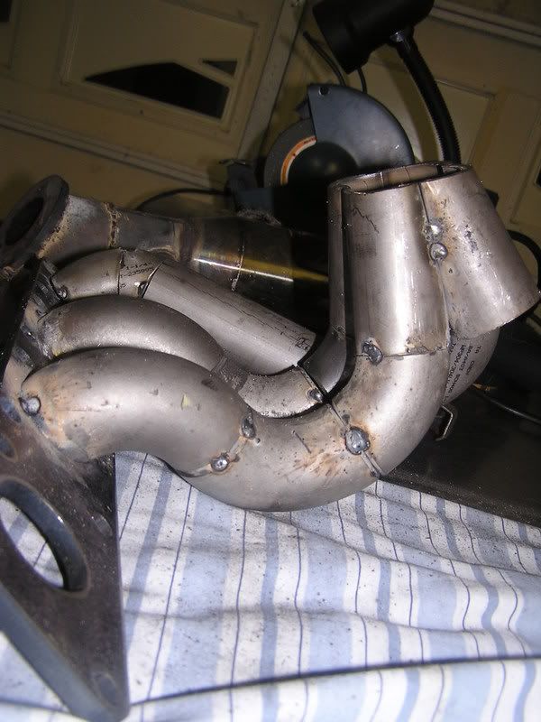 got most of it done today. 3 runners and the collector. The collector was definately the hardest part. A bandsaw would have been reallly nice. I spent lots of time grinding but it came out decent. The runners werent too hard. It took alot of testing and breaking it apart to get it right. And I only welded the flange upside down one time. Pictures.