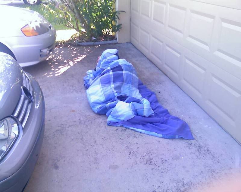 ok, so this is what viet, shawn, and i found in the morning the last time they came up to orlando. jon had decided to sleep in the Camry since the couches were taken up...then decided the ground would be more comfortable....