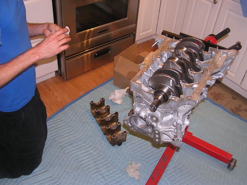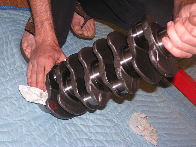 So I got my new crank shaft and we started the engine build yesterday. I had to leave early for work, but from what jon told me he ran into a slight problem. The tolerances on the 2 outside main bearings were a tad bit loose. I dont know the exact numbers, but I think jon does.